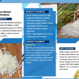 The Report Cube which is one of the leading market research company in UAE expects the Basmati Rice Market to grow at a CAGR of around 2.02% through 2032, as highlighted in their latest research ...
