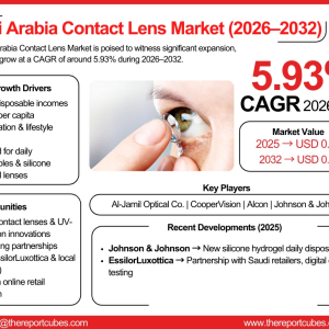The Report Cube which is one of the leading market research company in UAE expects the Saudi Arabia Contact Lens Market to grow at a CAGR of around 5.93% through 2032, as highlighted in their lat...
